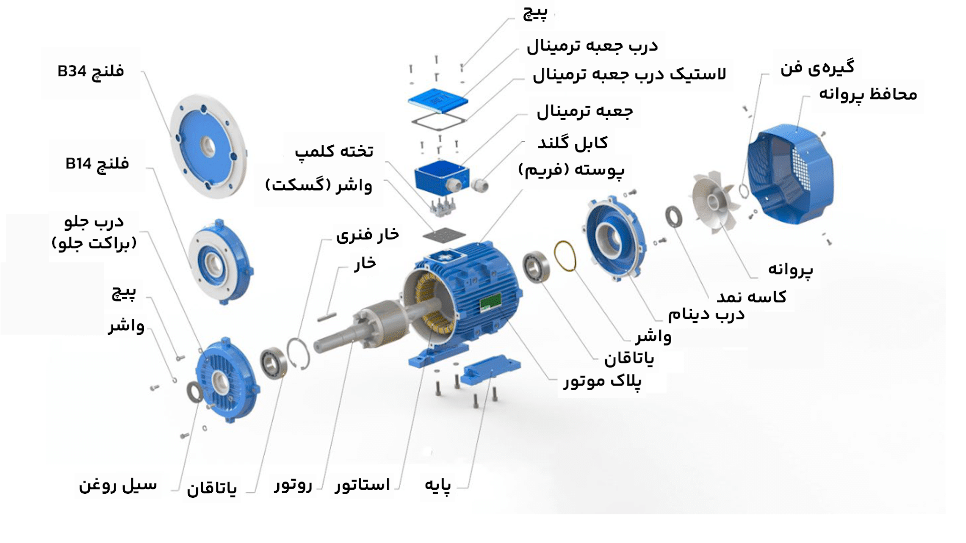 اجزای الکتروموتور چیست و از چه بخشهایی تشکیل شده؟