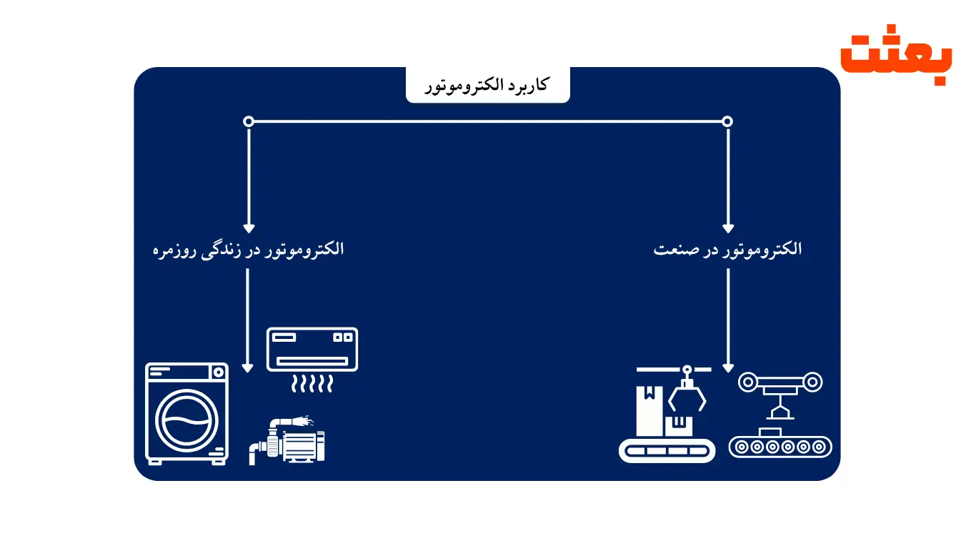 در صنایع، الکتروموتورها تقریباً در هر جا حضور دارند. تجربه ما نشان داده است که در یک کارخانه تولیدی، الکتروموتورها حدود 40-60٪ از مصرف برقی ماشینآلات را به خود اختصاص میدهند، لذا انتخاب نوع درست، کنترل مناسب و نگهداری اثر مستقیم بر هزینه تمام شده و قابلیت اطمینان دارد.