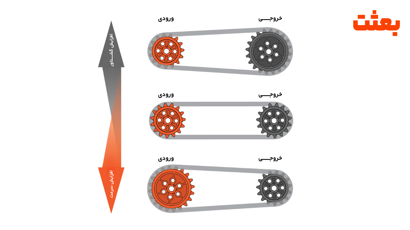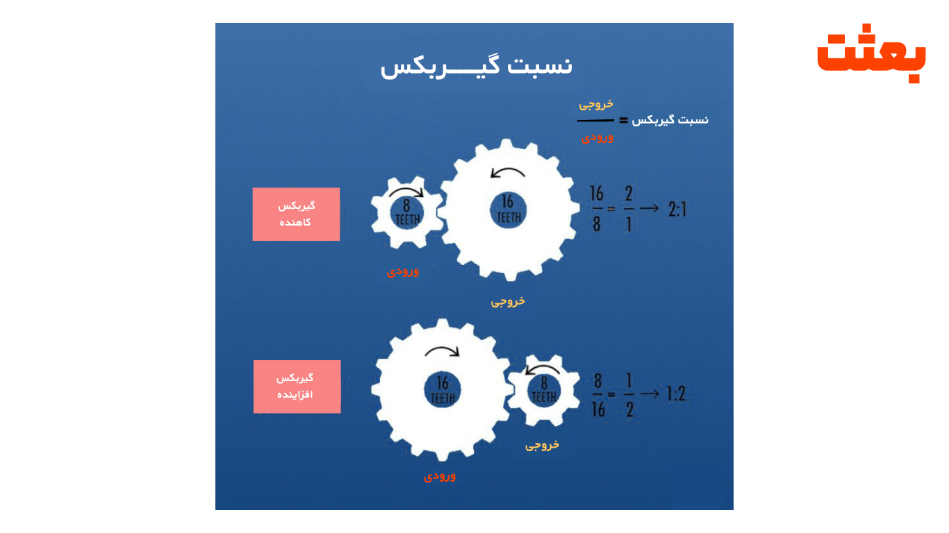 نسبت تبدیل = (دندانه خروجی) ÷ (دندانه ورودی)