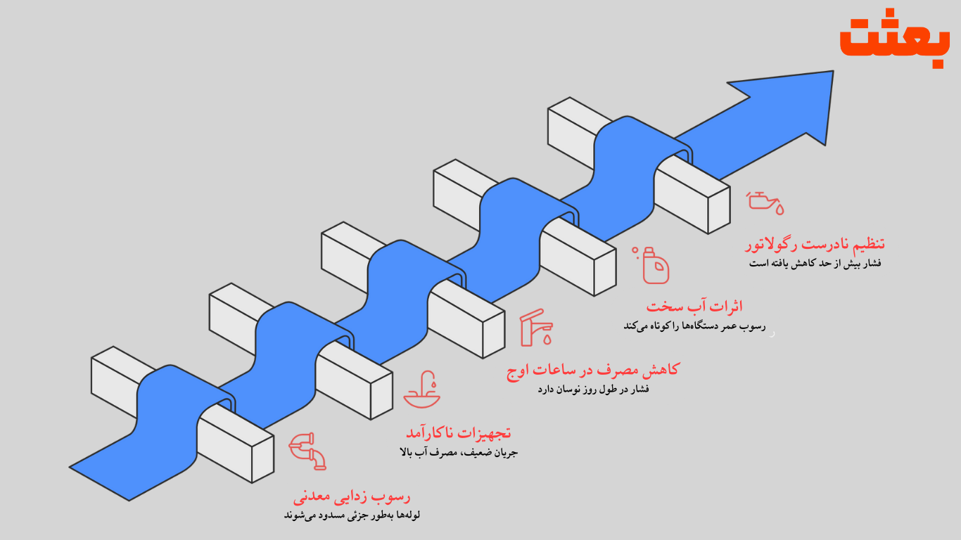 مهمترین دلایل کمبود فشار آب عبارتاند از: